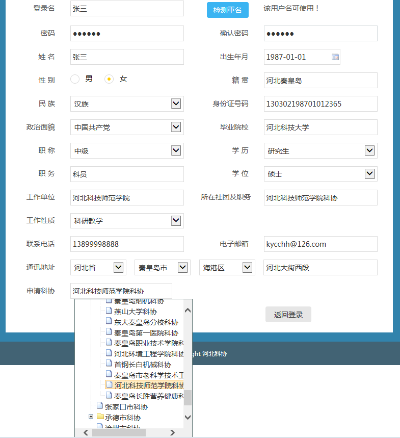 近日,秦皇岛市科协下发了《关于做好发展科协个人会员工作的通知》(详见附件)。请各学院积极组织本单位有意向的在职教师,登陆河北省科协会员管理系统(http://211.90.38.240:8081/),以普通会员身份注册个人信息进行填报,申请的科协为河北科技师范学院科协。