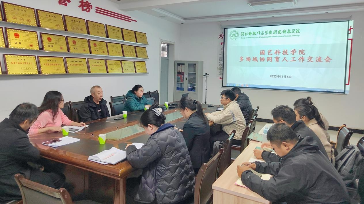 为深化“三全育人”综合改革,构建多场域协同育人新格局,2025年11月7日,园艺科技学院召开多场域协同育人工作交流会。会议由学院学生工作负责同志主持,昌黎校区寓管会负责人、学院领导班子成员、专业带头人、全体辅导员及班主任参加了本次会议。